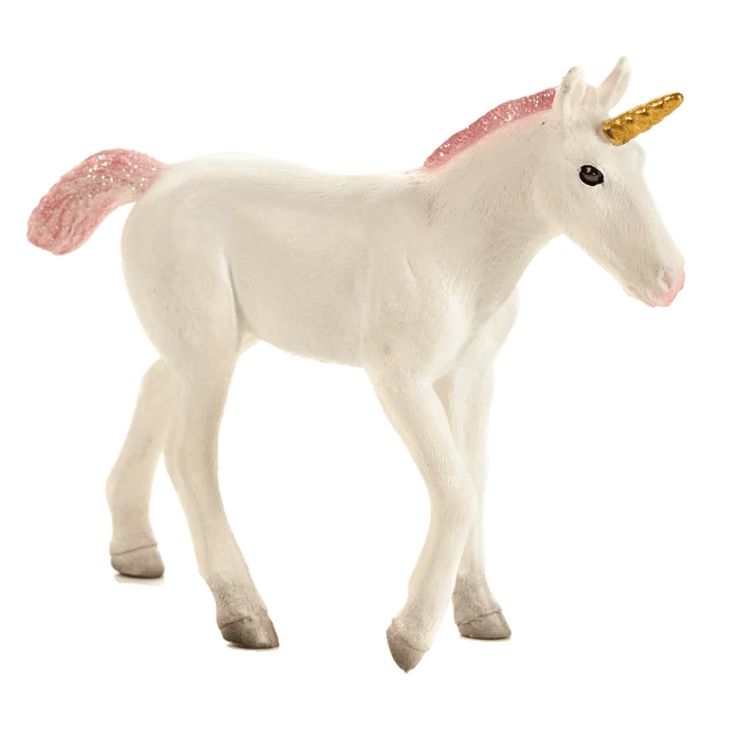 Einhörner sind mystische Kreaturen denen oft besondere Kräfte und magische Fähigkeiten zugeschrieben werden. Zwar existieren sie (angeblich) nicht, aber dass muss einen ja nicht davon abhalten es zu glauben und sie sich als Figur zuzulegen. Dieses Einhornfohlen versprüht pure Knuffigkeit und macht mit seiner glitzernden Mähne einiges her. Die Figur ist aus Hartplastik gefertigt und sehr schön bemalt worden.