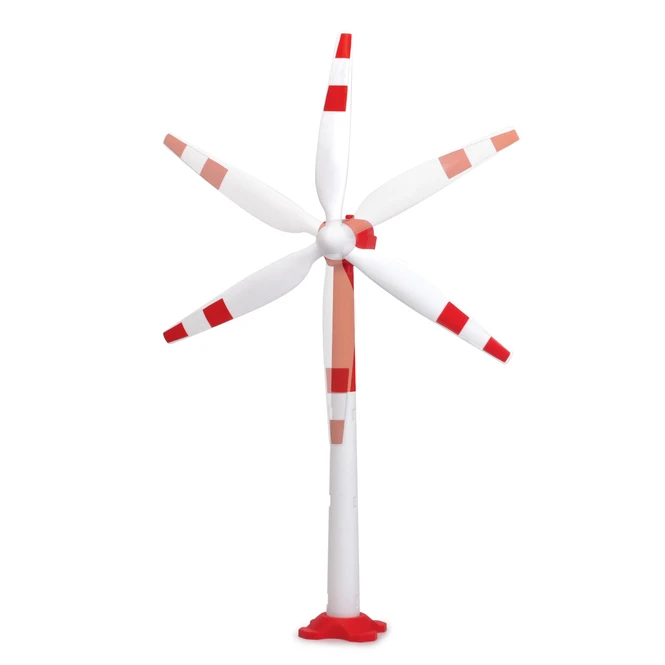 - Das Windrad hat einen Aufziehmotor, sodass sich die Rotorblätter drehen