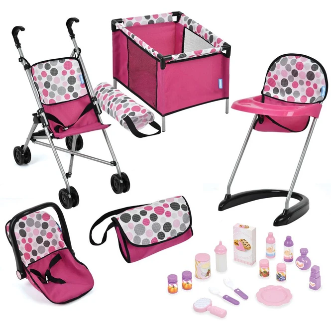 Großes Puppenzubehörset – 21-teilig – Pink Dots