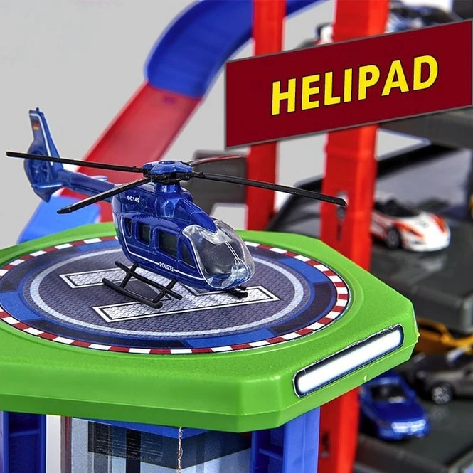 - Inhalt: 1 Parkgarage, 6 Fahrzeuge, 1 Zug mit Anhänger