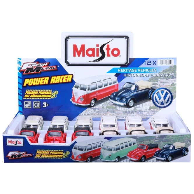 Der als „Bulli“ bekannte T1 Bus und das kultige Käfer-Cabrio kommen in verschiedenen Farben und eignen sich damit prima zum Sammeln.
